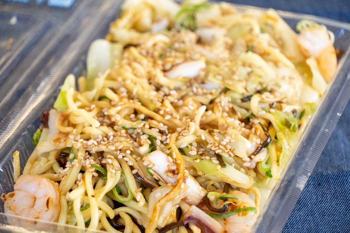 ということで、テイクアウトしてきた「MIX焼きそば」です。茹でたて30分以内の麺を使用しているため、できるだけ早めに食べてほしいとのこと!