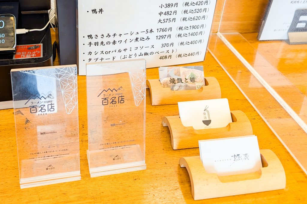 入ってすぐのレジ前には人気店の証である食べログ百名店のトロフィーが!