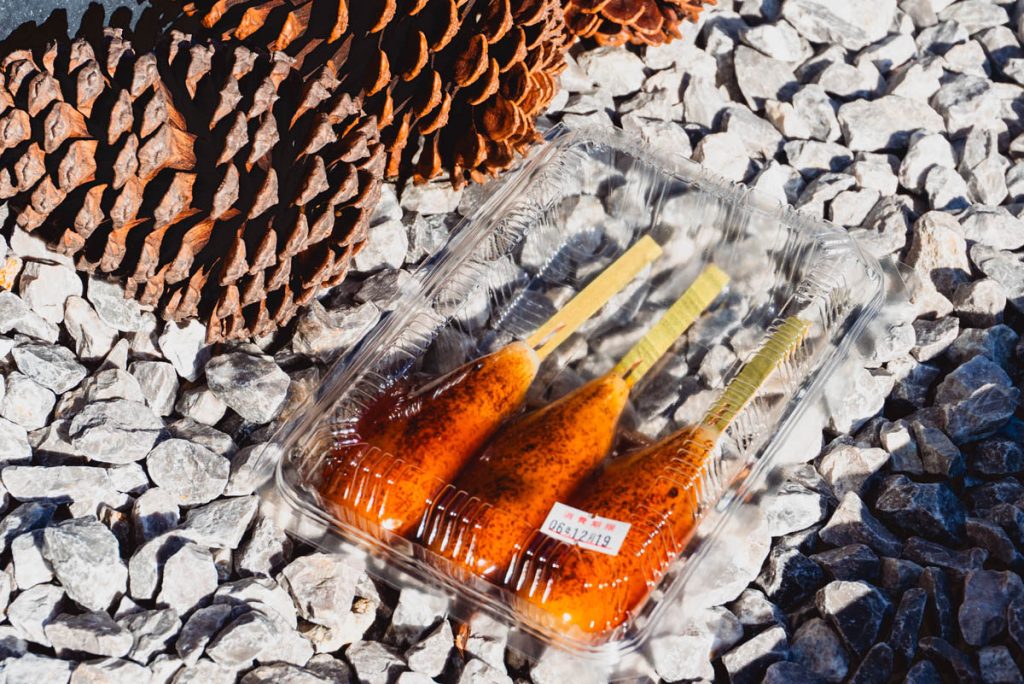 団子の甘み、やわらかさ、形、おこげの風味。タレは甘さ控えめで、甘めの団子と合わせるとそれはパーフェクト。招提のお米を使った地産地消のみたらし団子だそうですよ!