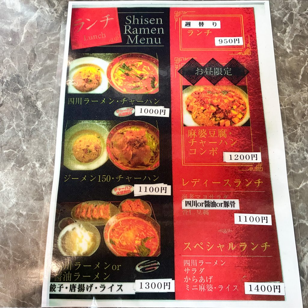 やっぱり四川ラーメンが食べたいのでランチメニューから「四川ラーメン・チャーハン(1000円)」をチョイス!