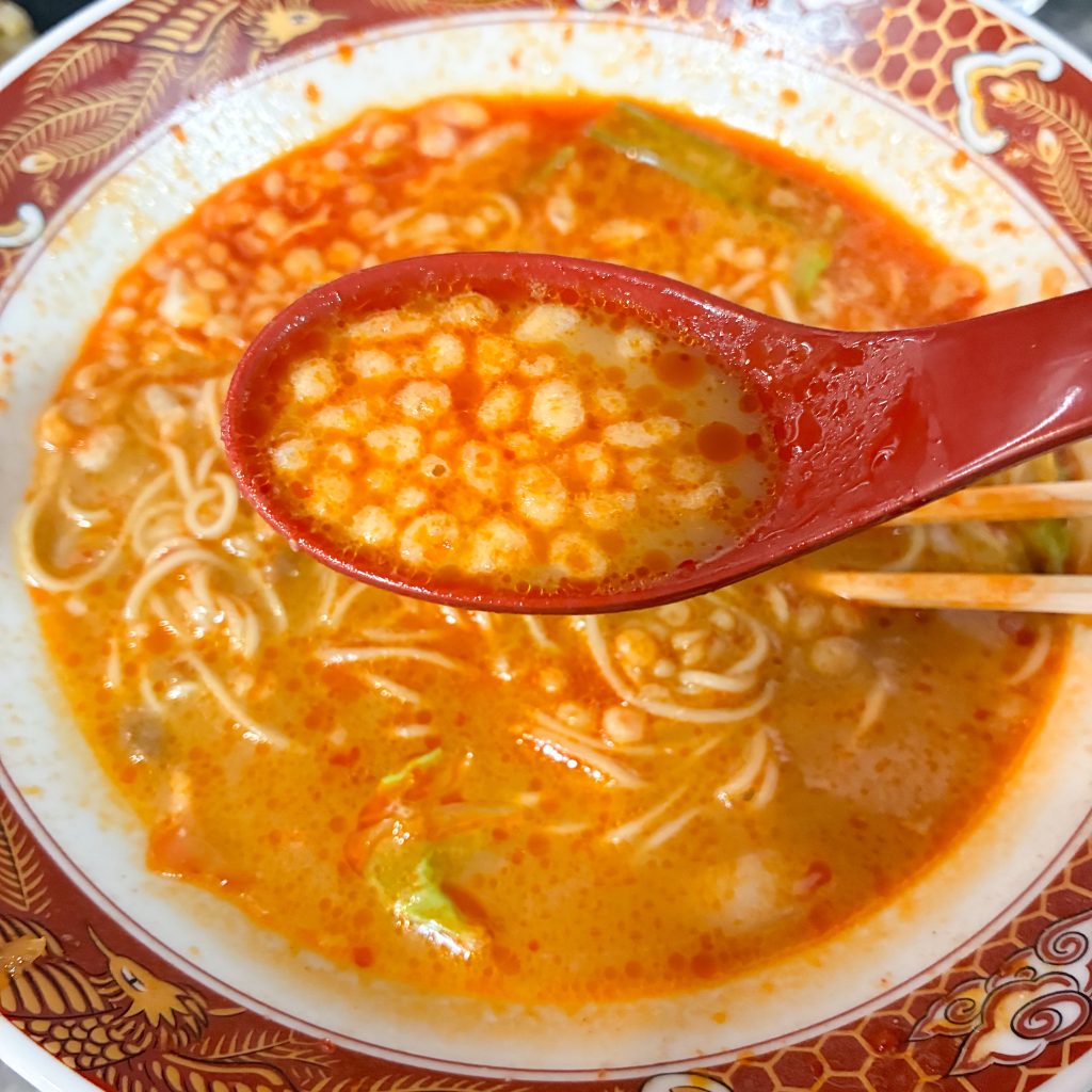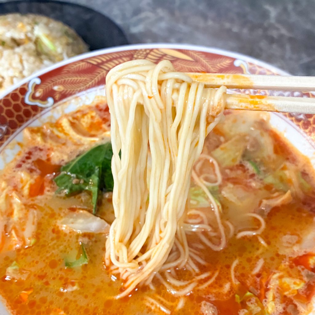 麺をすするたびに、赤いスープがしっかり絡んで満足感がやばい。