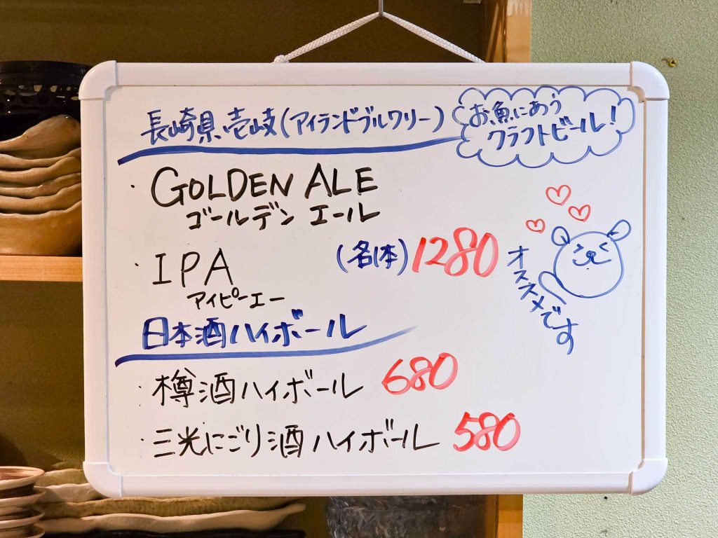 こちらがドリンクメニュー。 店主が長崎出身ということで長崎のクラフトビールもあるそうです。