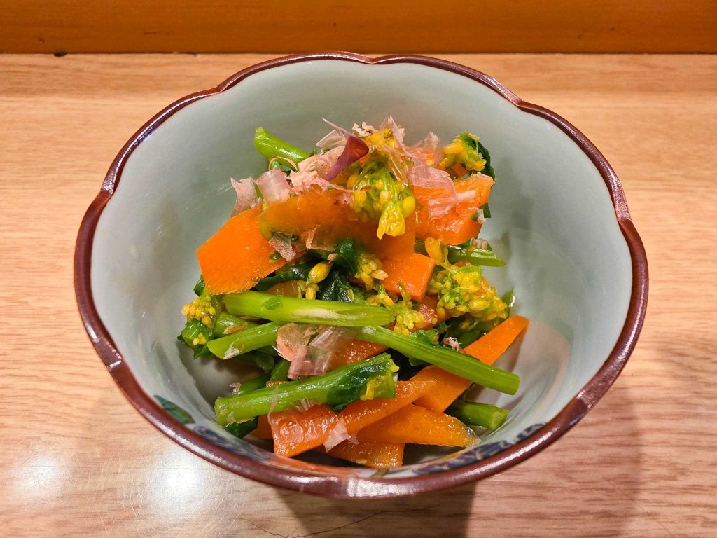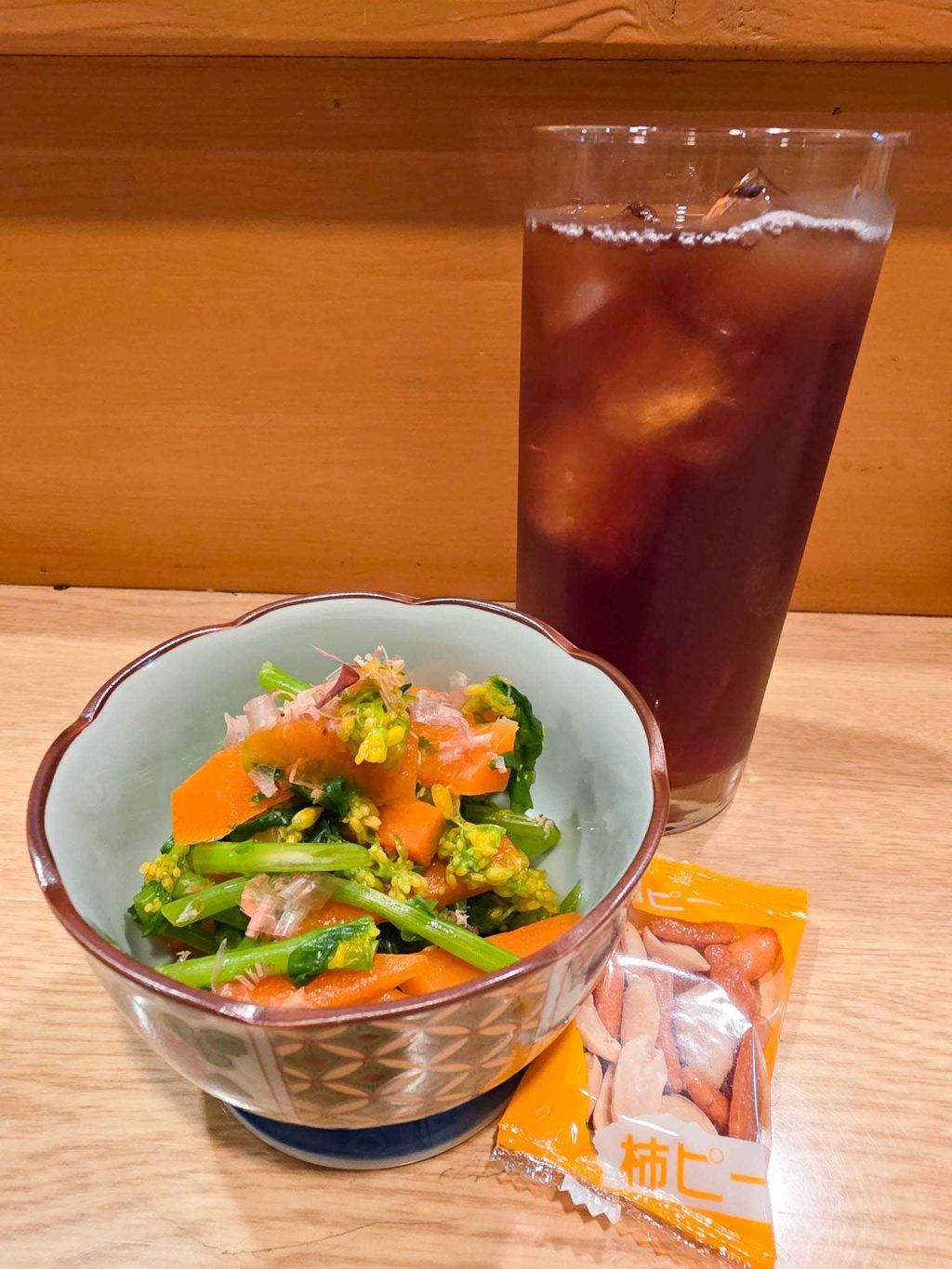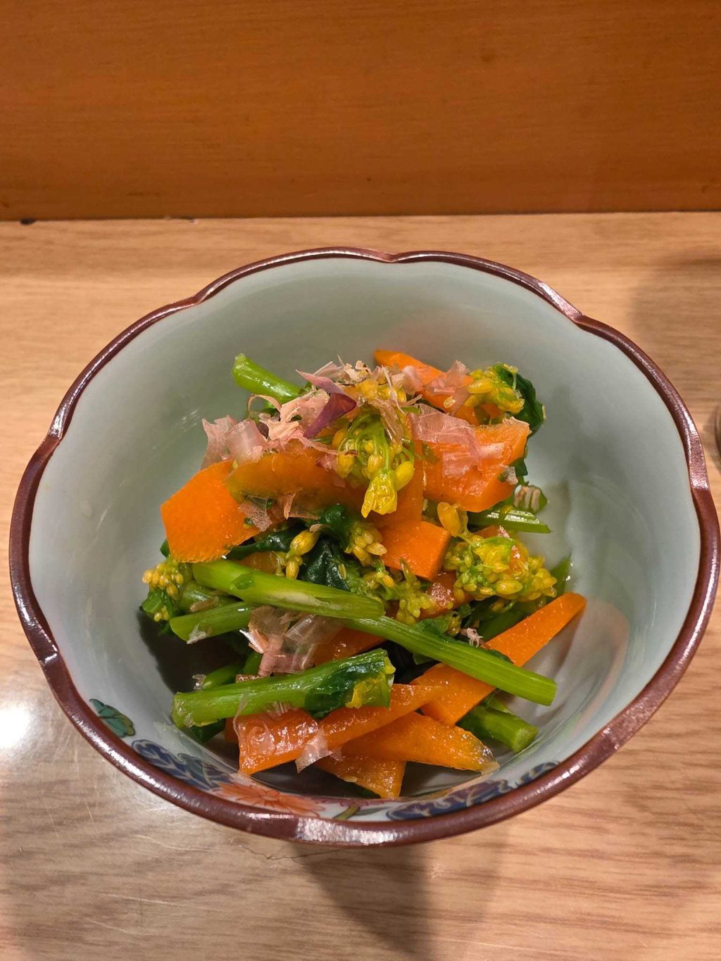 いつものごとく野菜をとらないと、ということで今回は菜の花のおひたしをオーダー。