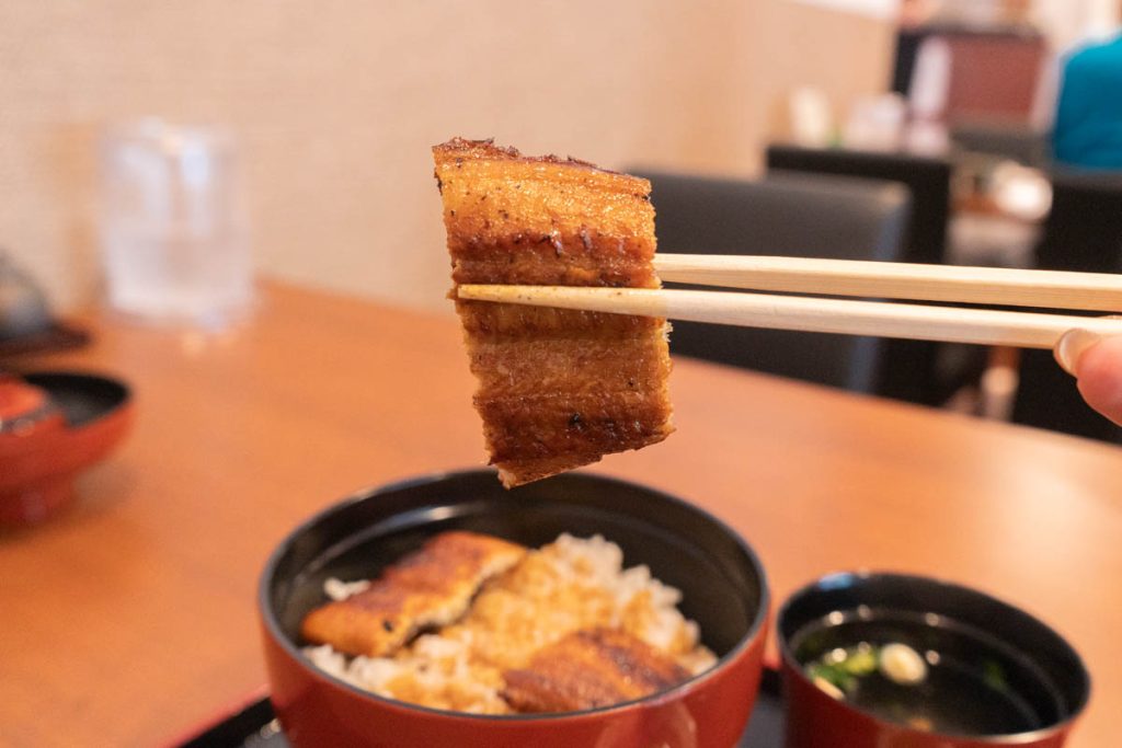 表面はこんがりと焼かれていて、お箸で割くとふわっとみがほぐれました。これが国産うなぎか…!贅沢。甘辛いタレが染み込んだお米とめっちゃ合います。
