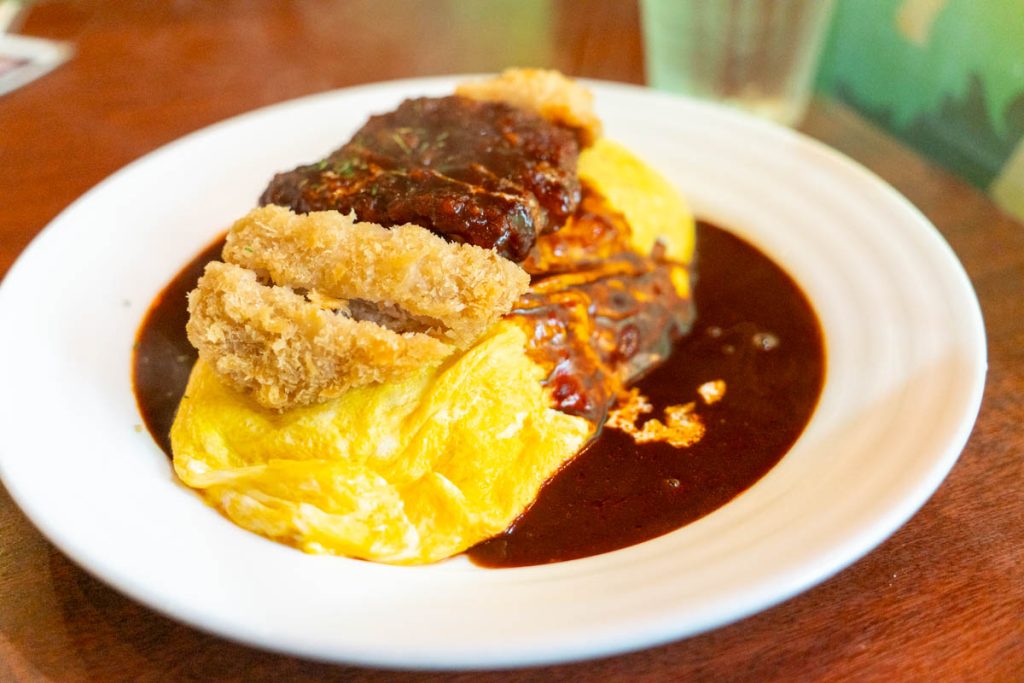 そこに揚げ物とデミグラスソースという、さらにさらにさらに手間がかかる料理をのせてしまうという狂気の産物(?)を注文せずにはいられませんね!!お家で再現するのが大変すぎる!!