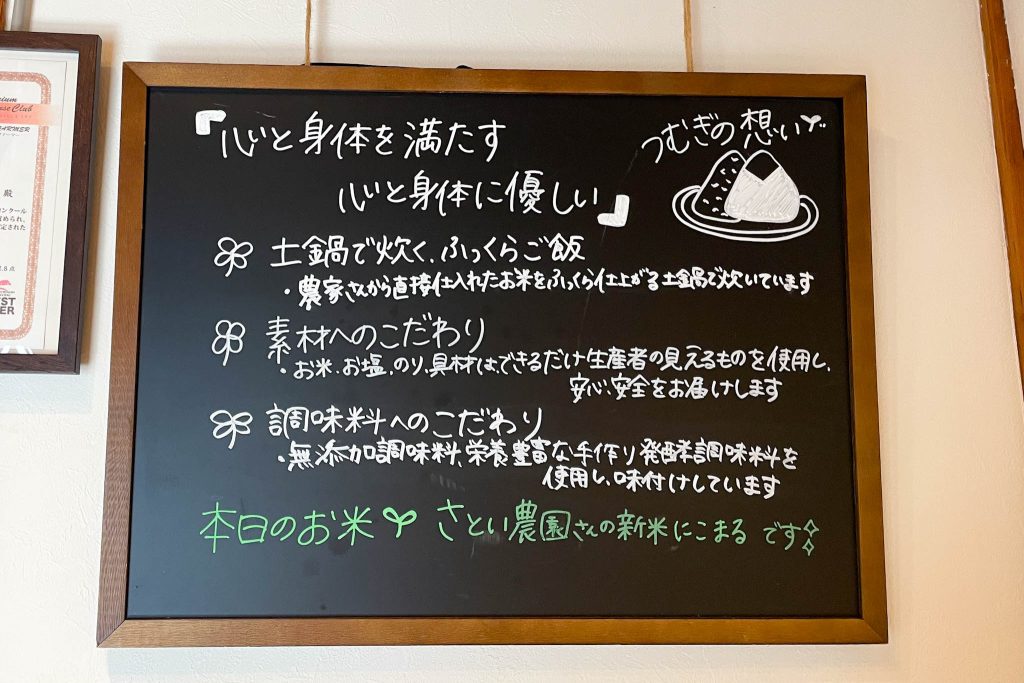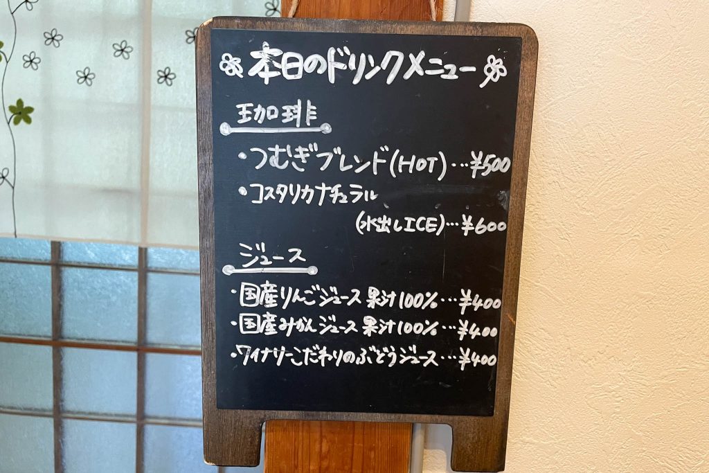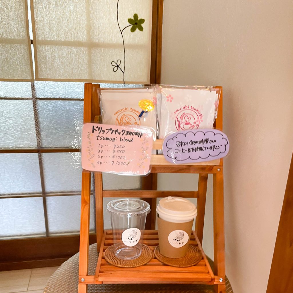 ドリンクメニューもあります。つむぎブレンドは、マホロバ珈琲堂さんのコーヒー豆を使用し、本格的に「おむすびに合う」味わいにブレンドされた、店長さんおすすめのコーヒーです。
