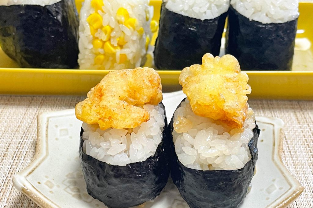 小さめサイズの天むすが2個入りで450円。なんと中にもう一つ天ぷらが!嬉しくて思わず笑顔になってしまいました。