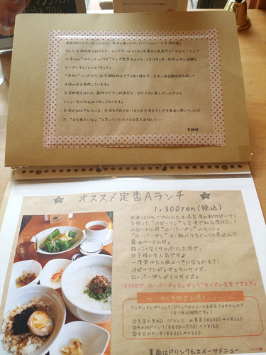 メニューの1ページ。ふい字(フリーフォント)が可愛い。