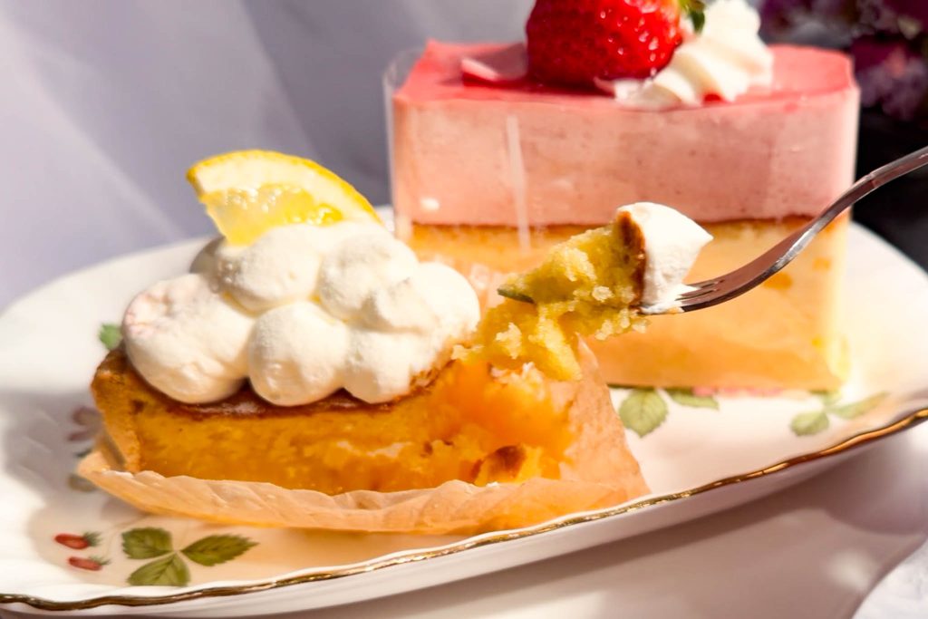 旬のレモンの甘酸っぱさがケーキの甘さを引き立てて、口の中でとろけて行きます。