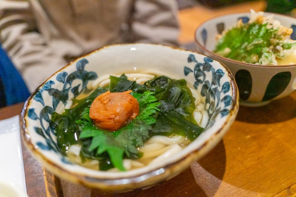 もちもちとした麺に、梅干しの酸味とわかめの旨みが絡んで、お口の中がとっても幸せ。