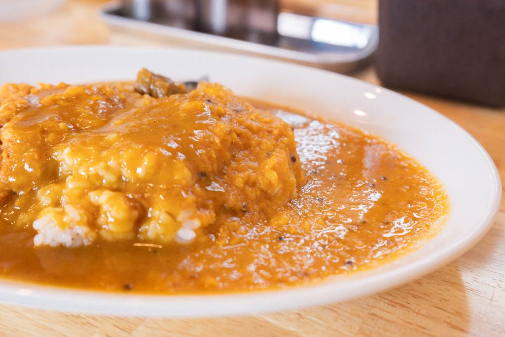 次に真ん中が「燦カレー」。大阪のクラシックな甘辛欧風カレー。オリジナルスパイスの配合と野菜や