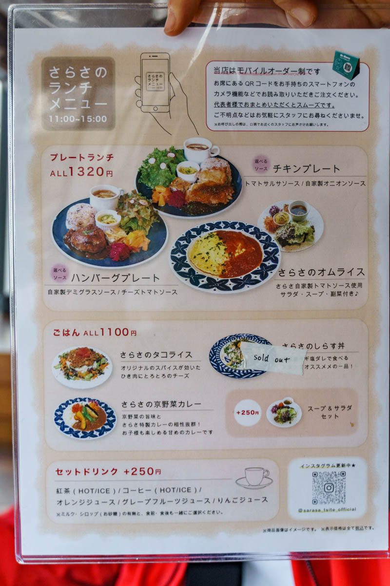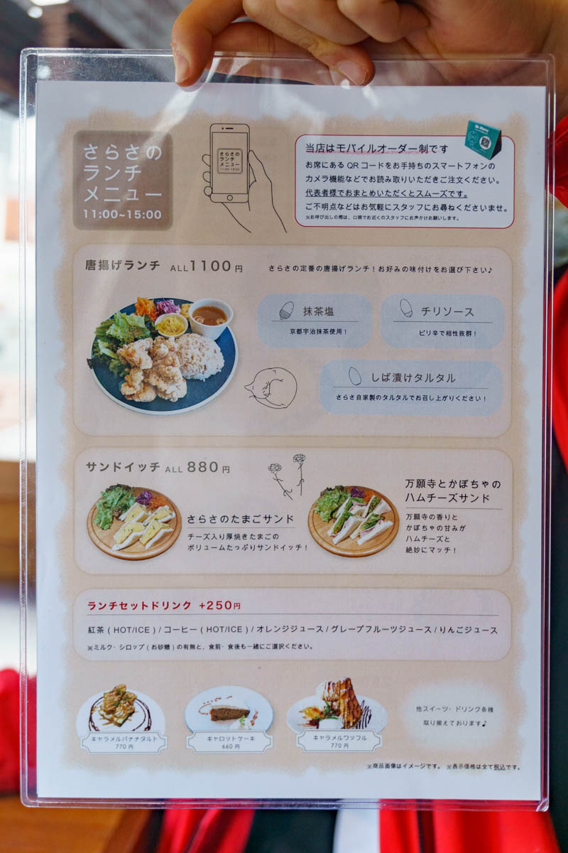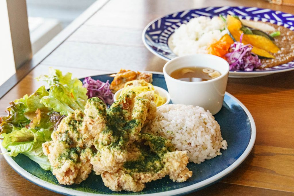 「唐揚げランチ(1100円)」と「さらさの京野菜カレー(1100円)」です!