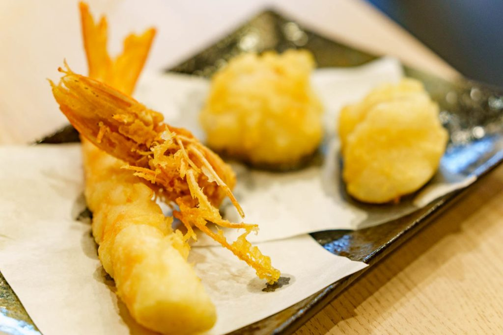そうして注文した天ぷらたち!これは「神の海老」。めちゃくちゃプリプリで海老が大きくて、まさに神…!めっちゃ美味しすぎて3個くらい頼みました。