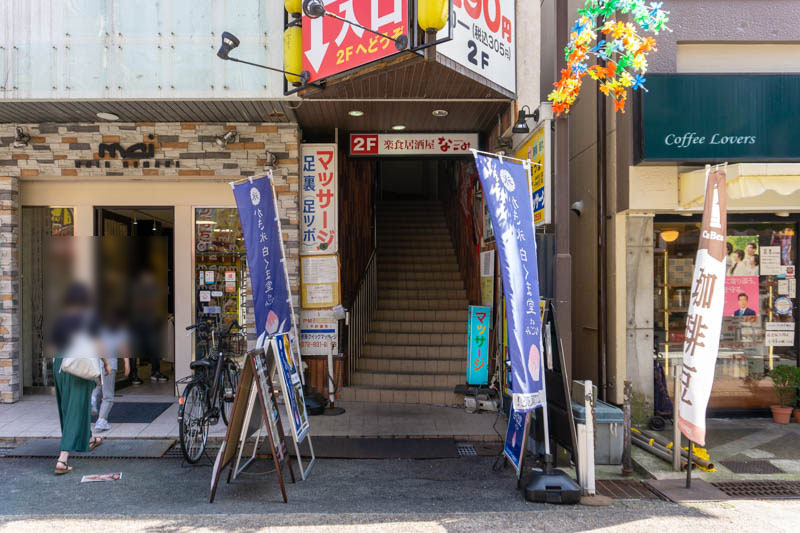 お店の外観。楽食居酒屋なごみが、お昼に「白くま堂」として7月初旬からかき氷販売を始めたようです。ふわふわかき氷、気になった方は立ち寄ってみては!
