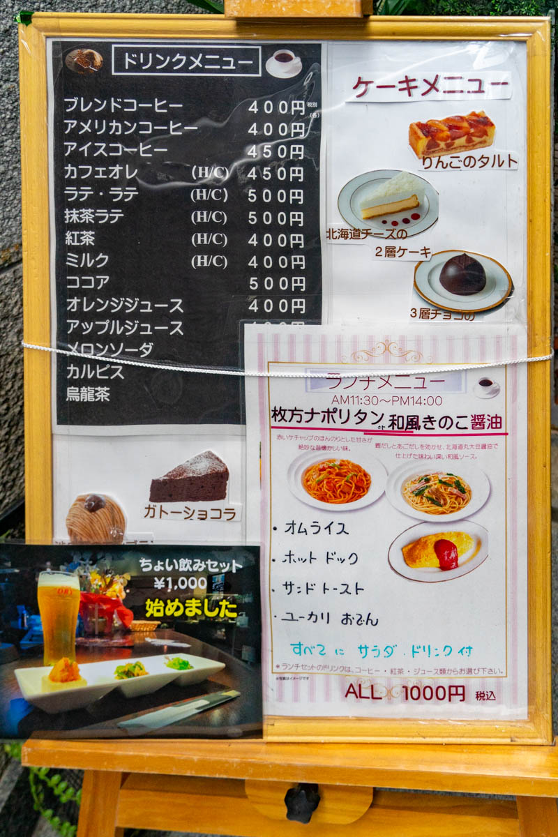 ランチメニューなど。ユーカリおでんも気になりましたが、ここは枚方ナポリタン!