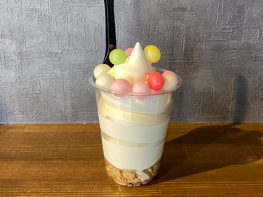 濃厚なミルク感じるソフトクリームと、さくさくのおいりが合わさっておいしい…!