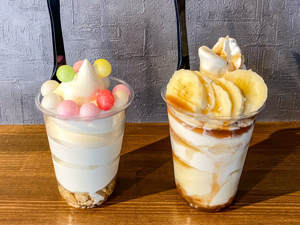 「おいりソフト(500円)」(左)と「キャラメルバナナぷりん(680円)」(右)です!