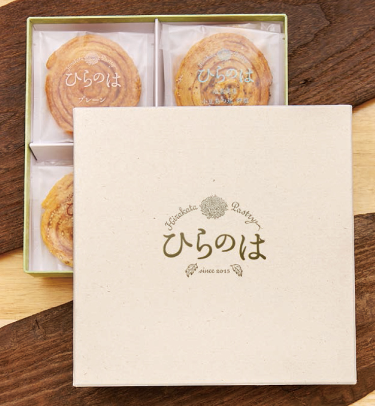 ギフト箱24枚入り3,400円(税別) 店主さんに伺ったところ、このギフト箱は、淀川の河川敷で育った葦(Wikipedia)を使った紙で作られているそうです。デザインも枚方のデザイナーさんの製作で、お菓子だけではなくてなんとパッケージまで全部が枚方づくしでした!すごい!