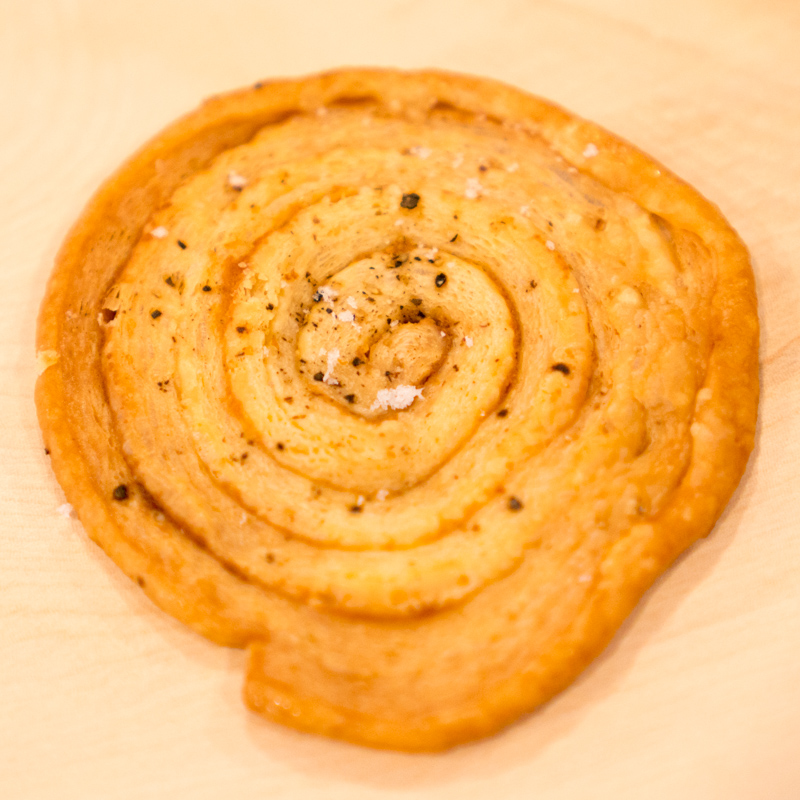 昔ながらの製法で作られたまろやかな味わいの塩と粗挽きこしょうのアクセントが、パイの優しい甘さを引き立てます。
