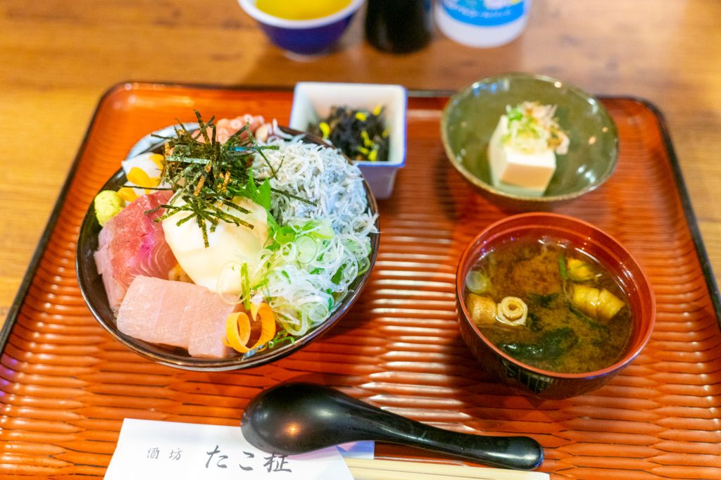 お昼のメニュー。今回はもちろん、タワーグルメとされた海鮮とろろ丼を注文しました。