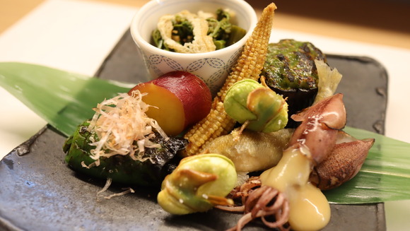 揚げてあるのに各素材がピンピンしてて、お出汁につけてももちろん美味しいのですが、何もつけなくても食材の甘みだけで十分なくらい。