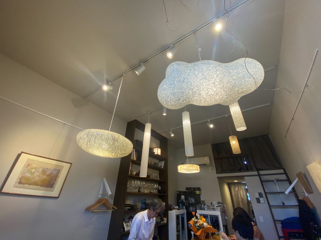 葦を原料とした環境に優しい非木材紙を使用した照明が、空に浮かんでいる雲みたいで素敵でした。
