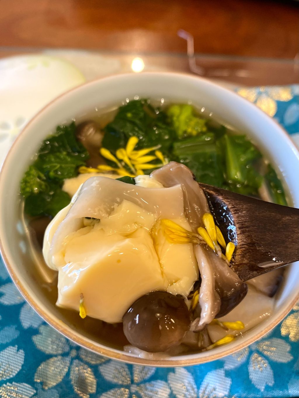 3品目は、菜の花ときのこの茶わん蒸し。春を感じる~!!!