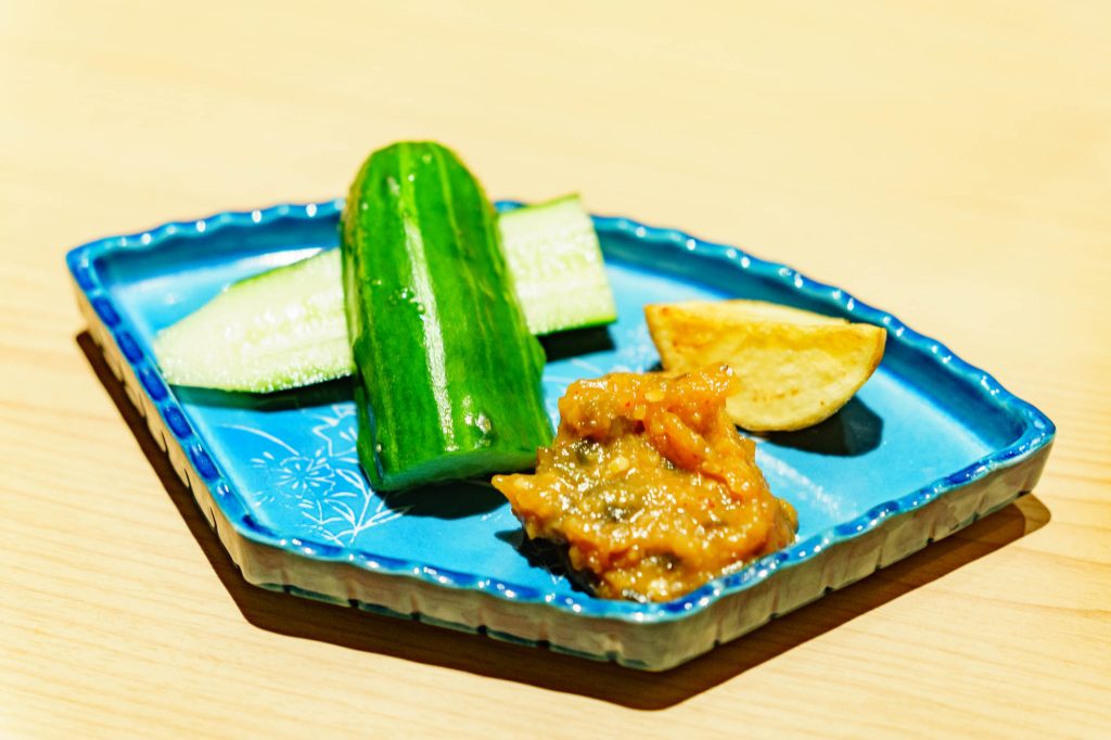 この日の突き出しはお味噌付きの野菜。もろみっぽい味噌の手作り感あふれる味わいが癖になる!