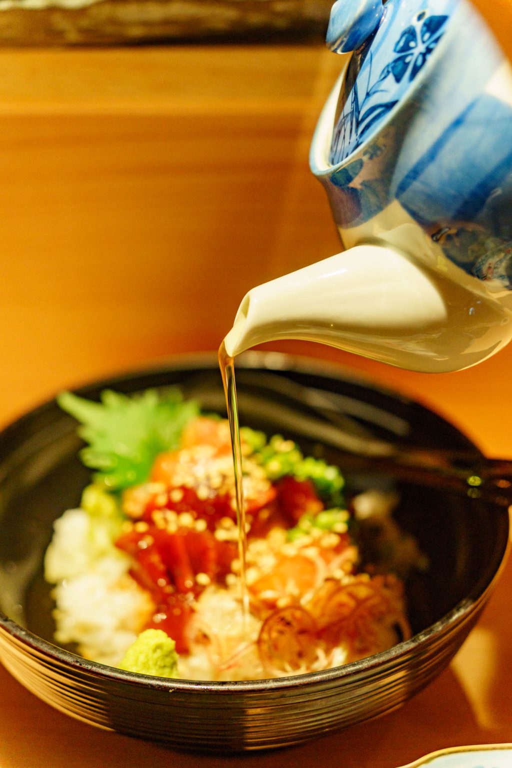 ちょっと食べ進めたらお出汁をかけて出汁茶漬けに。