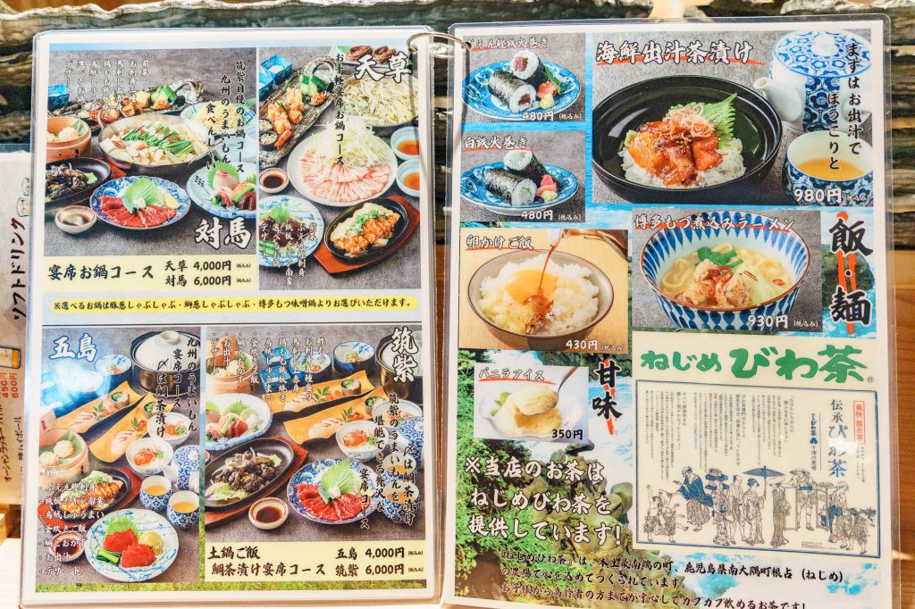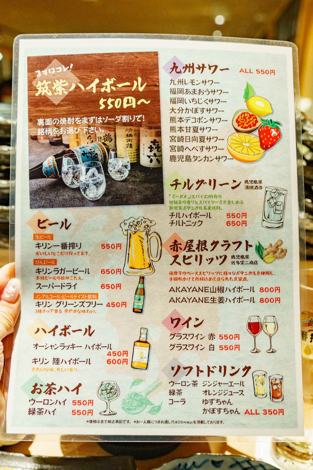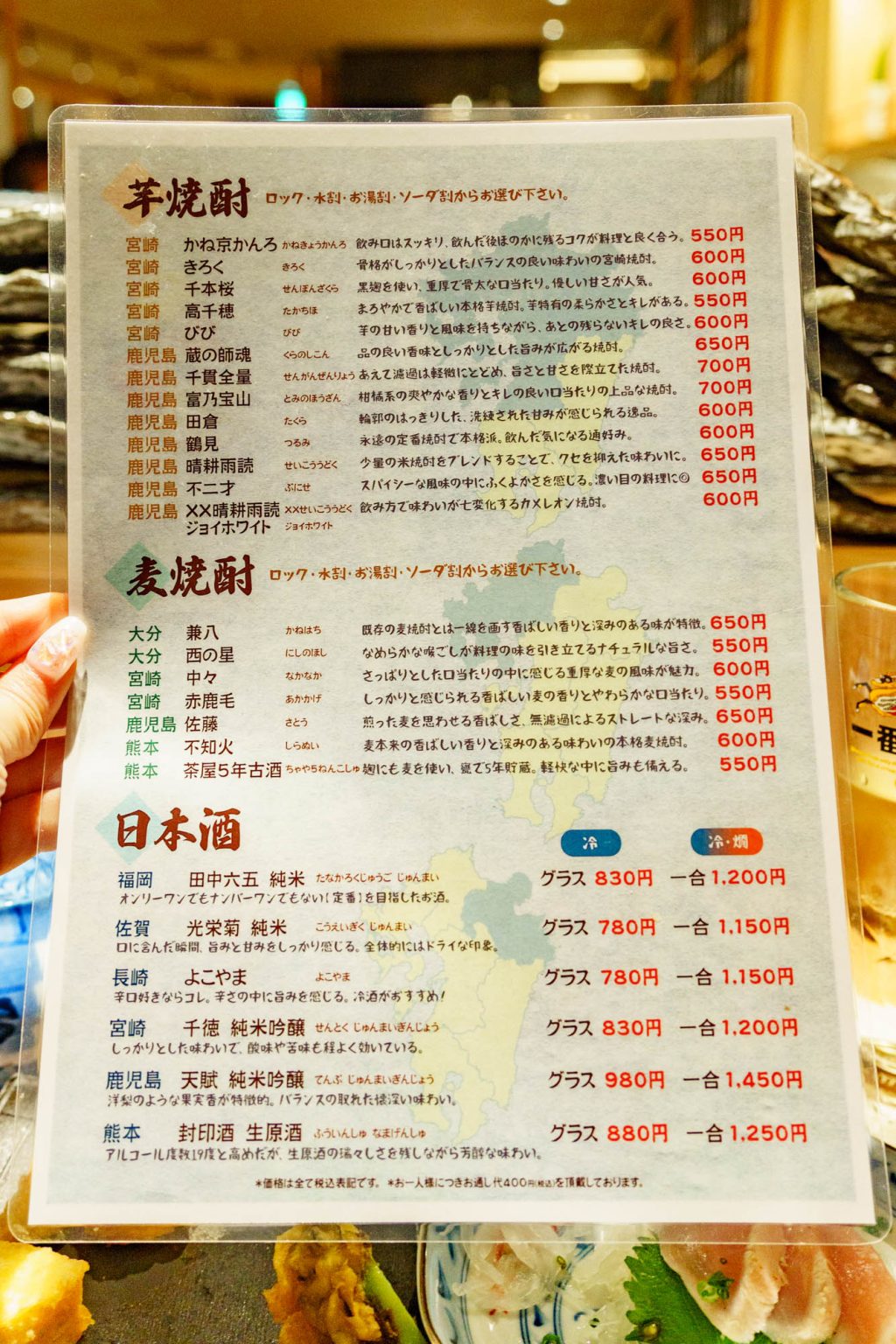 ドリンクメニュー。さすが九州、芋焼酎の種類が豊富!