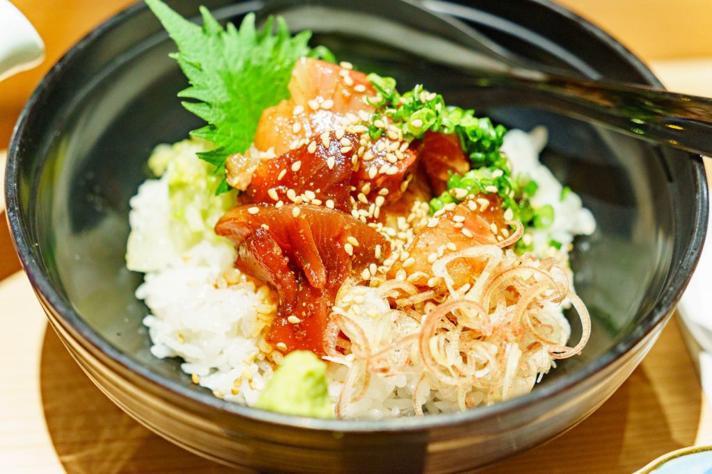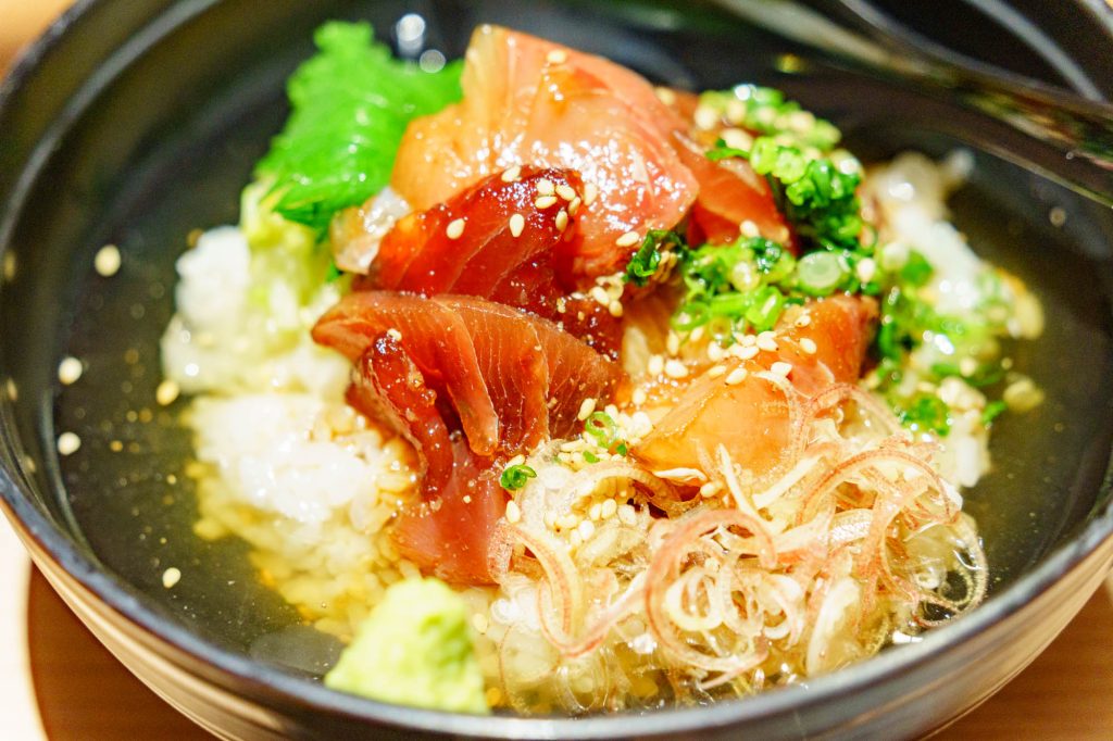 海鮮出汁茶漬け!まずはそのまま海鮮丼として楽しみます。漬けタレがしっかり染みていてご飯が進む…!