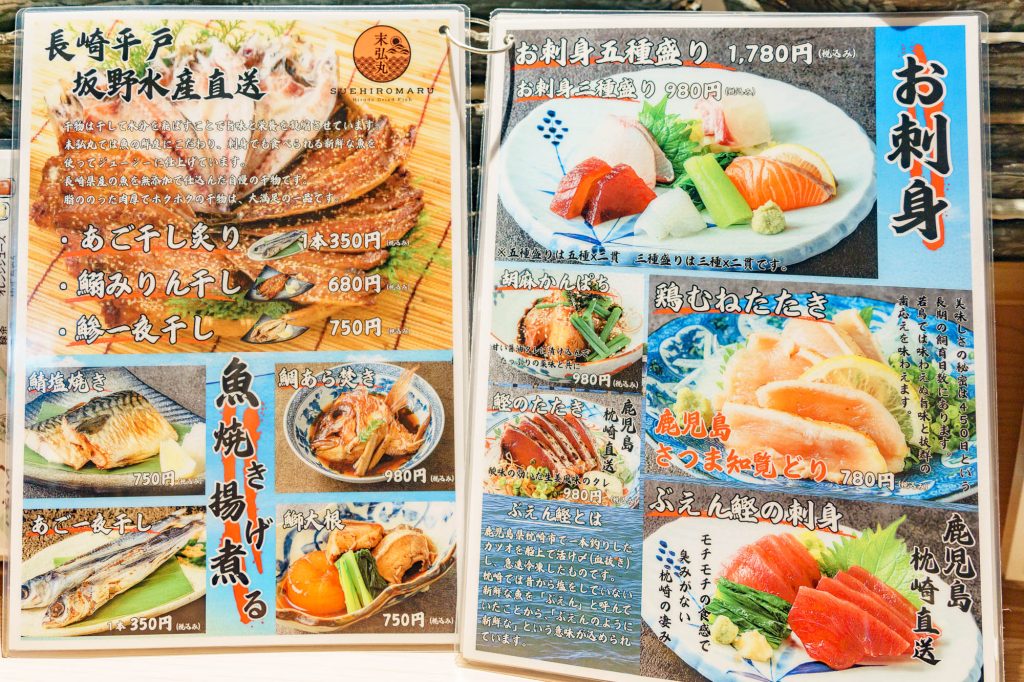 新鮮なお刺身や鉄板焼、揚げ物、酒の肴、お鍋などいろんなメニューがあります。