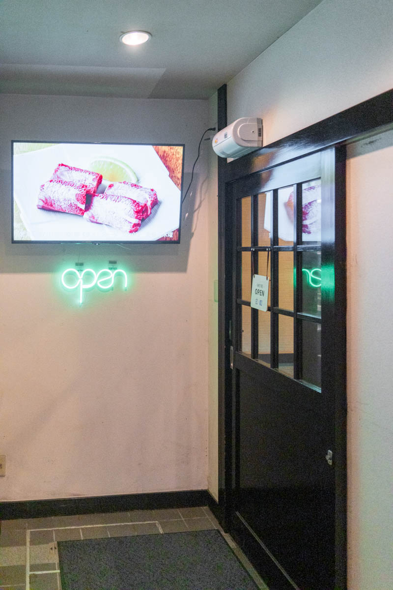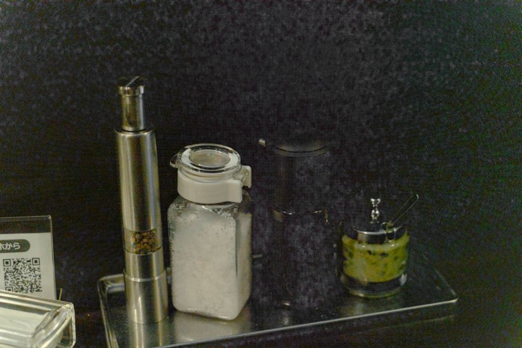 暗い写真で申し訳ないんですが、地味に仕事をしていたのが卓上調味料。こいつら普通の顔して、全員がエース級でした。わさびとシャトーブリアンの組み合わせうっま!ってなりながらヘブンズ・ドアー開きかけました。