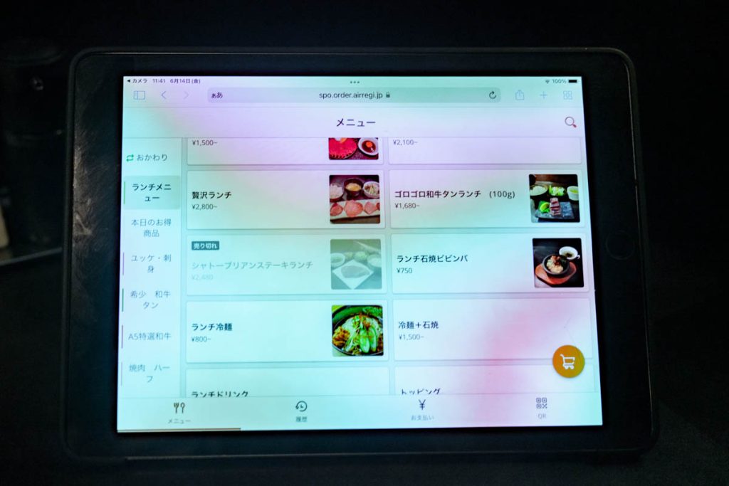 お店のタブレットを見たらたしかにいろいろありました。Instagramを見てシャトーブリアンステーキランチがあるのを知っていたので、シャトーブリアンステーキランチをチョイス!