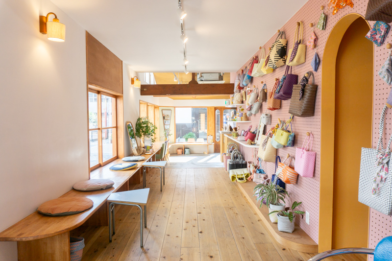 堤町にあるメケアリバッグのお店「MEKEARISA」の姉妹店で、店内にはメケアリバッグが飾られています。
