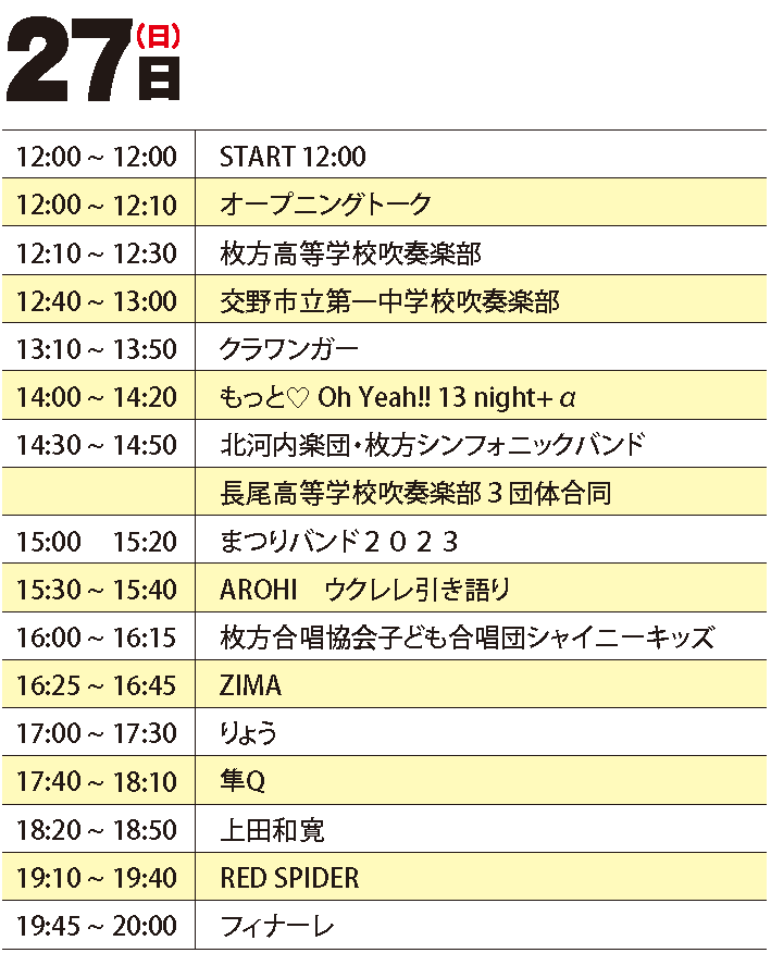 2日目は吹奏楽部の演奏やヒーローショー、アーティストライブなどが開催されます。