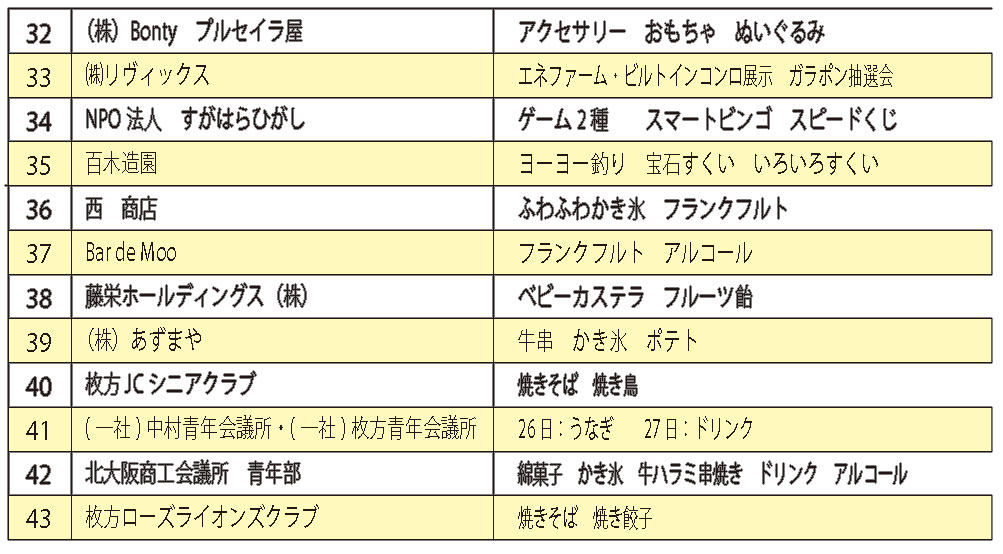 縁日ブースの営業時間は8月26日12:00-20:00 / 8月27日11:00-19:00です。