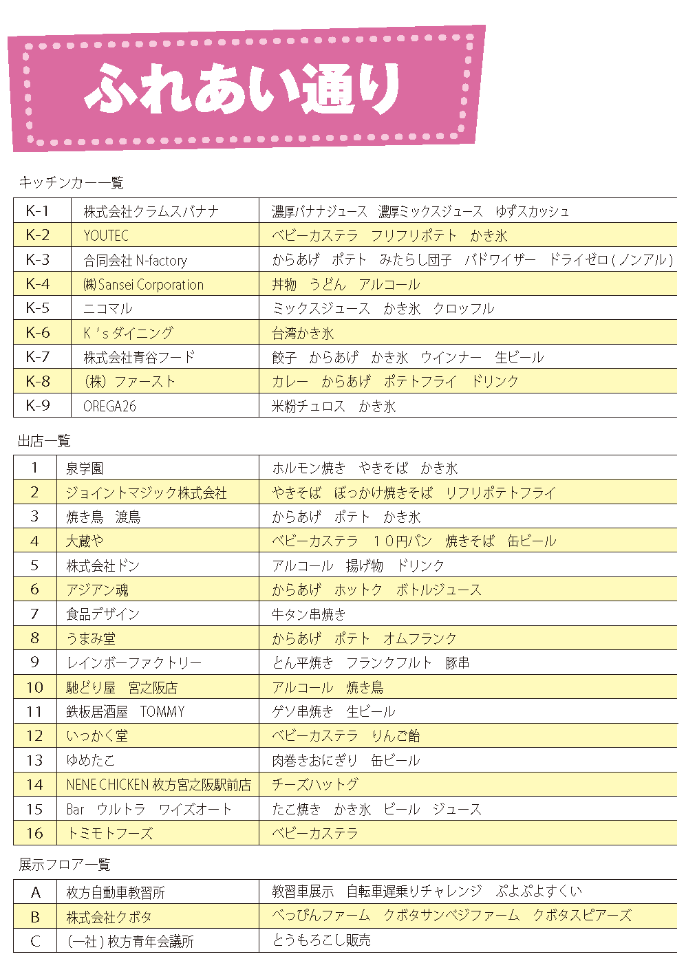 ここまでのブースの出店情報