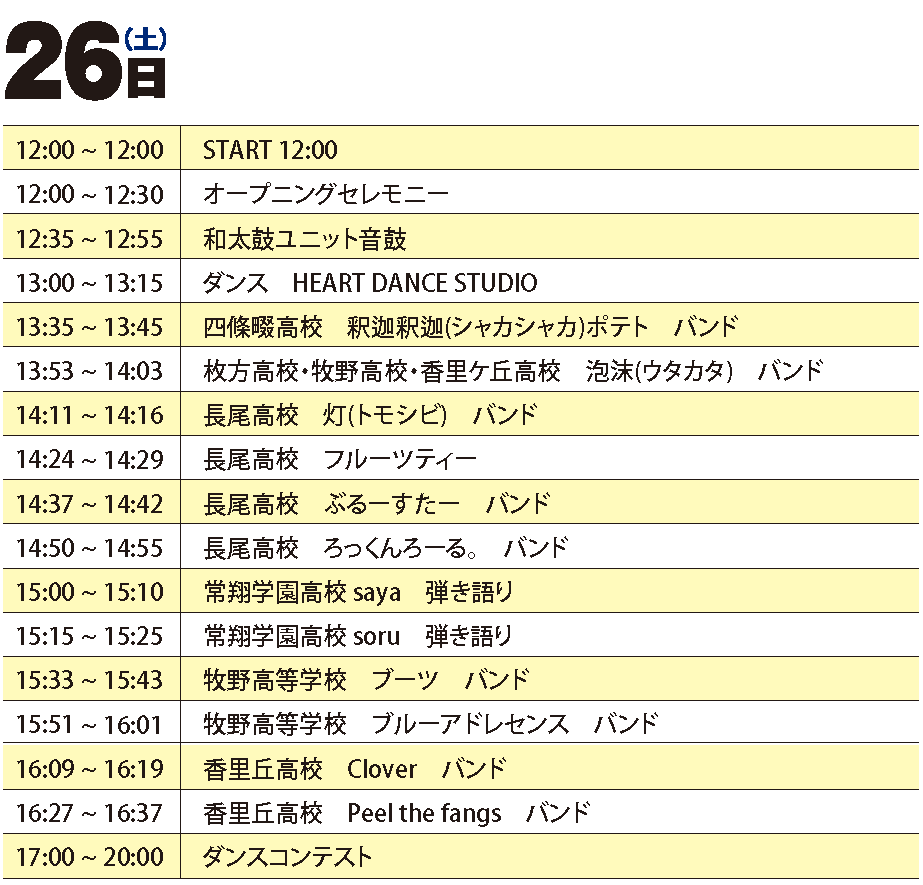 初日はたくさんの高校生バンドが出演します。ダンスコンテストや和太鼓も!