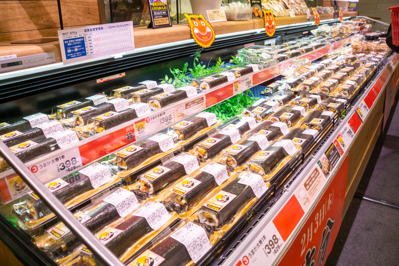 お店の方によると恵方巻きは約3000本の用意があるとのこと。また、ハーフサイズのものや、お子さんでも食べやすそうなものもありましたので、ぜひ!
