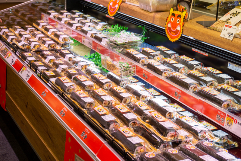今日2月3日は節分の日!ということで、「ライフ 枚方T-SITE店」にはハンパない数の恵方巻がありました。
