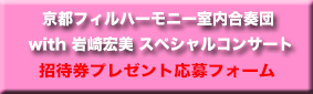 平成26年4月25日(金)に、枚方市市民会館大ホールで開催される「京都フィルハーモニー室内合奏団 with 岩崎宏美 スペシャルコンサート」に、3組6名様を招待していただけることになりました!