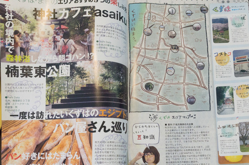 エセデザイナーの僕がデザインし、みんなで各店舗へ取材へ行き許可を得て作り上げた、くずは牧野地域のオススメ情報満載のこの冊子。