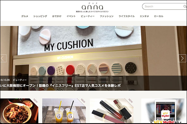 「anna(アンナ)」は関西エリアに関するグルメ・おでかけ・ファッション・コスメなど、関西の女性のための情報をまとめているウェブメディア。