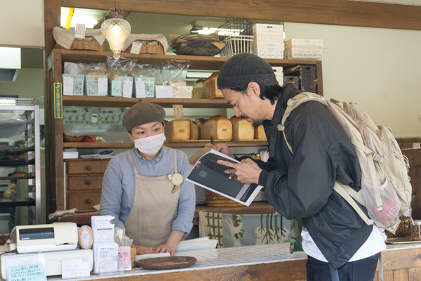店主の宮地さん(右)に1つ1つ、結構長い間詳しく教えてもらっていました(笑)