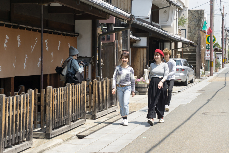 カジカジの編集部高松さん(前の左)・カジカジカメラマンの中村さん(前の右)に加え、今回は4月末にリニューアルしたカジカジのWEBサイトで新しく動画コンテンツがスタートすると言うことで、動画撮影チームのみなさんも一緒に取材に回ることになり、大人数で遠足みたいになりました(笑)