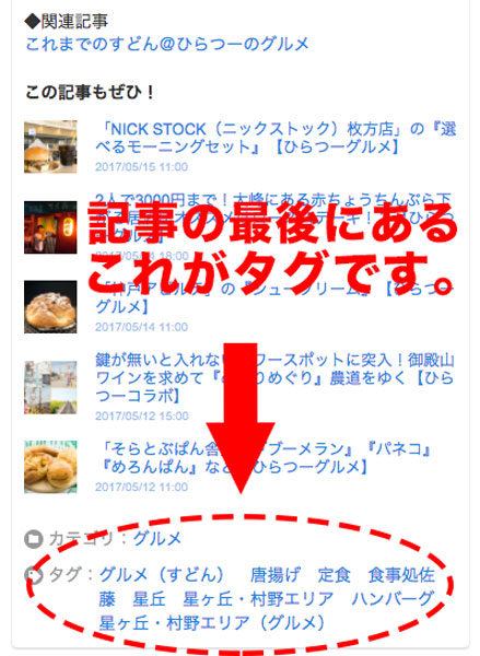 記事には検索で探しやすいように「タグ」というものを付けているのですが、そのタグを使って地域別のグルメ記事をまとめて見れるように調整中です。