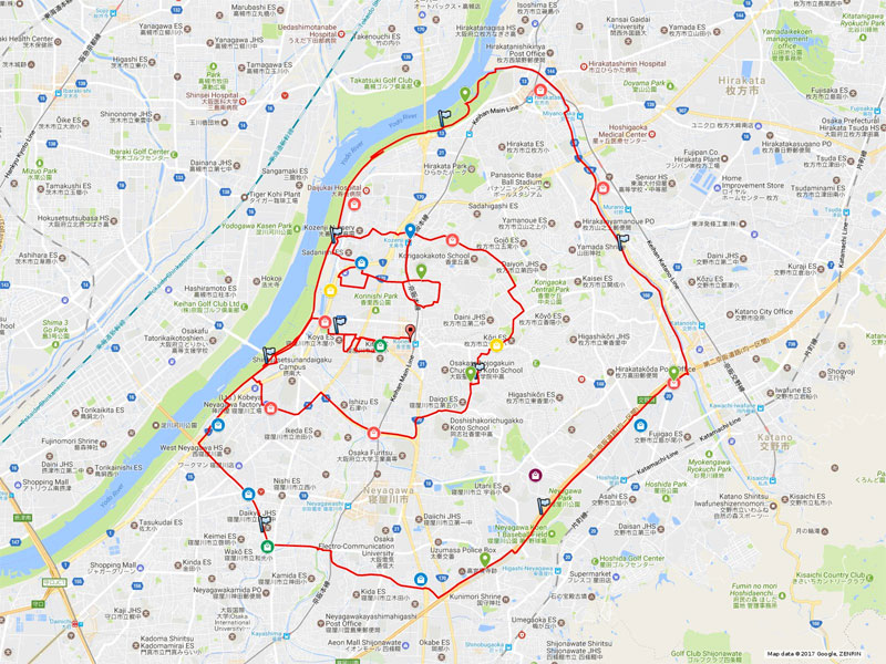 枚方で顔マラソン完成させました!名づけて「北河内ゴリラマラソン」枚方・寝屋川・交野市にかけてでっかいゴリラの顔を描きました。