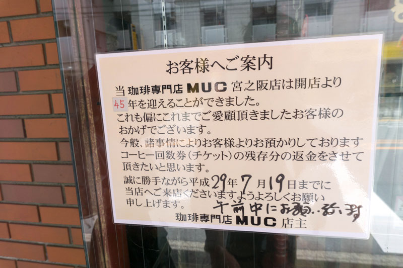 (珈琲専門店MUC宮之阪店にあった貼紙)