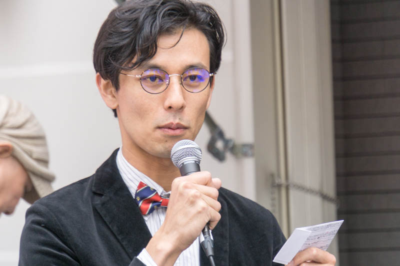(けやきマルシェの際に司会をするカトゥー@ひらつー)
